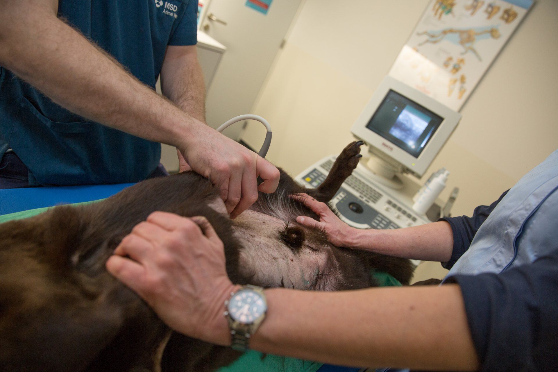 Bij een echografie stuurt de dierenarts geluidsgolven door de interne organen en weefselstructuren.